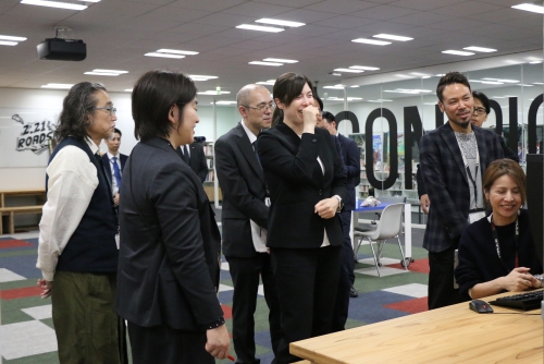 Our executives, including CEO Shuzo Shiota, guided her through the studio. While she observed artists at work, we explained the animation production process, as well as our in-house developed tools and management systems.